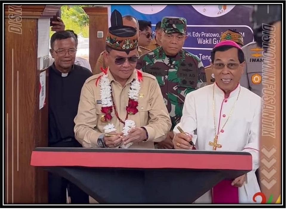 MMCKalteng – Palangka Raya – Gubernur Kalimantan Tengah H. Agustiar Sabran meresmikan Bangunan Jalan Salib dan menandatangani Prasasti Jalan Salib yang berlokasi di Catholic Center Jl. D.A. Tawa No. X, Palangka Raya, Selasa (14/10/2025). Kegiatan peresmian ini dilaksanakan bersamaan dengan Rapat Kerja Tahunan Keuskupan Palangka Raya.